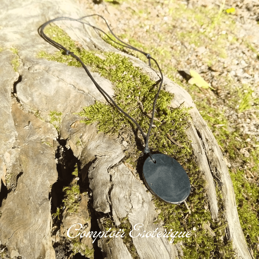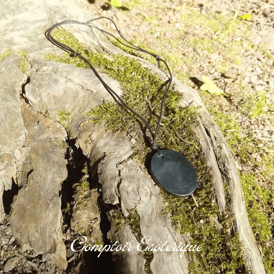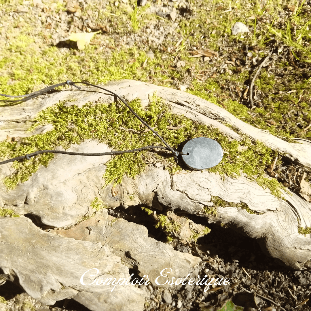 Découvrez la pierre ancestrale shungite et ses bienfaits grâce à notre pendentif en shungite véritable d’environ 3 cm.